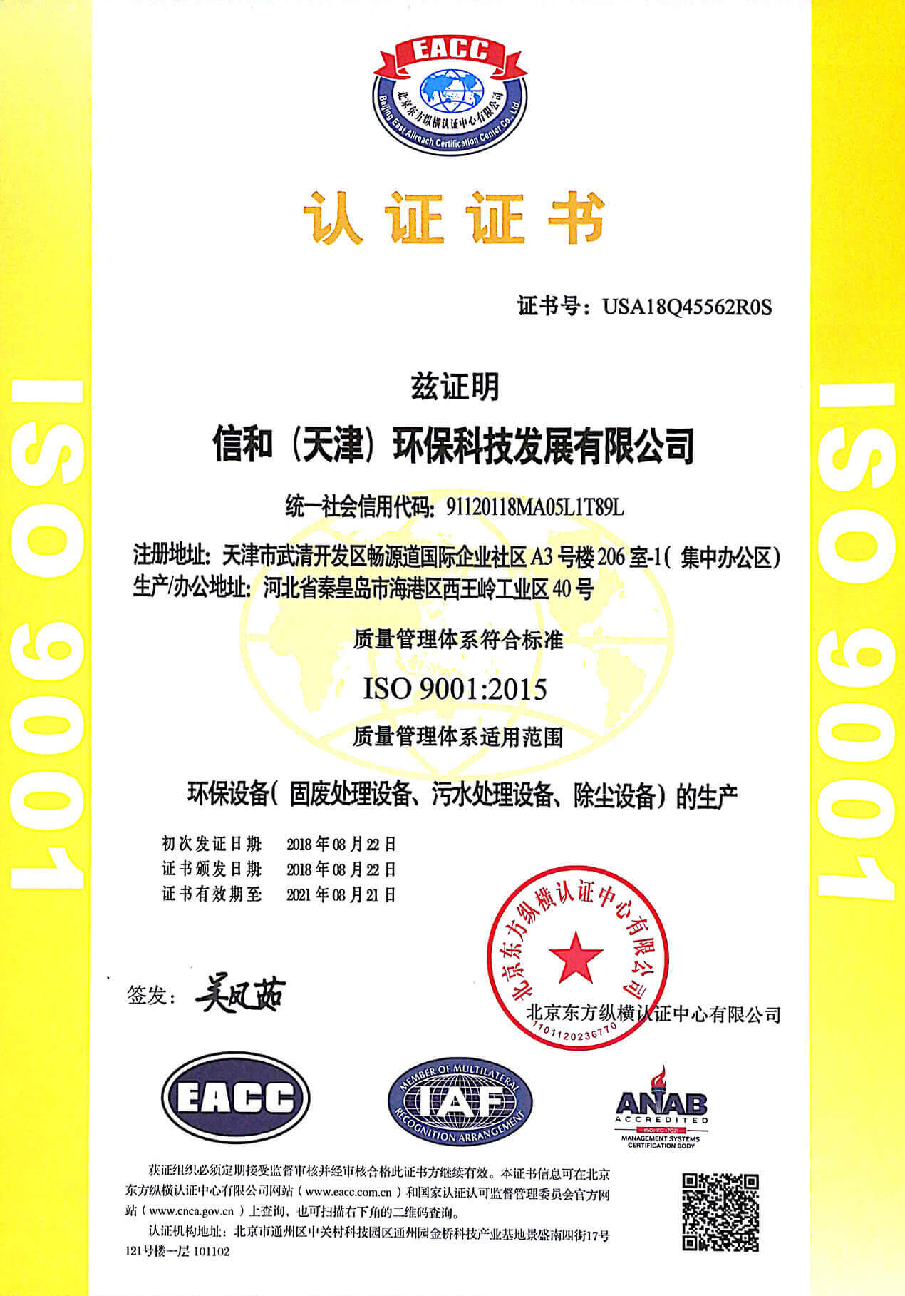 以“專業、誠信、創新、環保”為核心理念。專業從事環保設備研發的生產型高新企業,為客戶提供專業的環保設備。擁有《中華人民共和國進出口資格證》和《中國環境保護產品認證證書》。產品通過ISO9001質量管理體系認證、ISO4110環境管理體系認證、ISO18001職業健康管理體系認證。